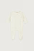 Dit geboortepakje is gemaakt van zacht, biologisch katoenen fleece. Het pakje heeft een ronde hals en drukknopen aan de voorkant,  voetbedekking en zachte elastische tape aan de binnenkant van de enkel voor bewegingsvrijheid. Dit tijdloze item is één van de allerfijnste must haves voor de allerkleinsten.
